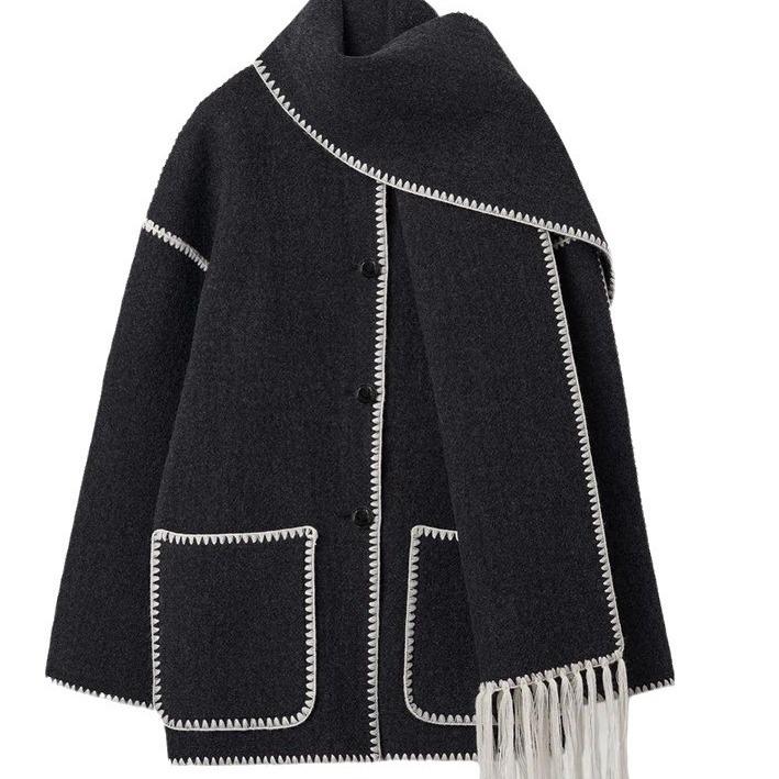 Evropský a americký dámský vlněný kabát 2023 se šálou a střapci je šik a všestranný svrchní oděv navržený pro moderní ženu.. Tento kabát, vyrobený z vysoce kvalitního polyesterového vlákna, poskytuje stylovou, ale teplou variantu pro chladnější dny.. Jeho tenká vnější vrstva nabízí lehký pocit, takže je ideální pro vrstvení.. Kabát má volný střih, který zajišťuje pohodlí a snadný pohyb, zatímco dlouhé rukávy dodávají jeho designu eleganci.. Jeho módní výstřih do U doplňuje stylový střapec šály, který dodává vašemu šatníku jedinečný nádech.. Tento kabát je ideální pro různé příležitosti a bez námahy kombinuje praktičnost se stylem, který je v souladu s nejnovějšími trendy.