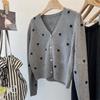 Korejský šedý pletený kardigan s puntíky dámský podzimní vrstvený design výklenek zeštíhlující top s dlouhým rukávem