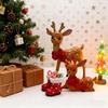 Vintage Spotted Deer Ornament Resin Sika Deer Figurine with Red Bow Cute Deer Statue for Christmas Decoration Table Centerpiece