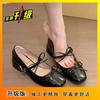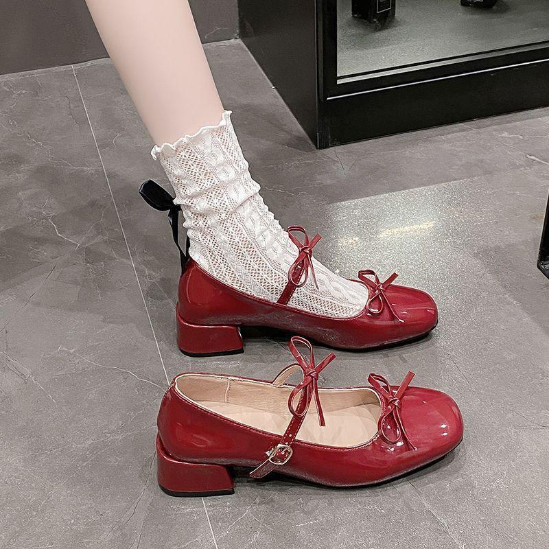 One word with fairy style with skirt Mary Jane shoes square head 2025 bow French retro silver thick heel single shoes