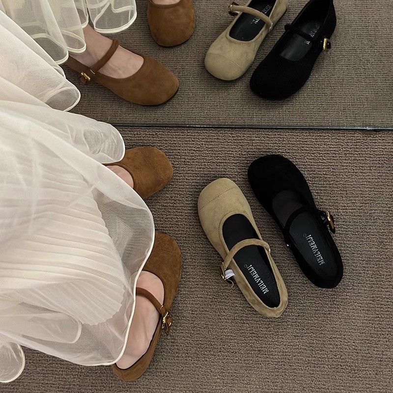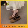 Retro flat Mary Jane shoes with skirt 2025 new suede black light mouth soft sole single shoes women's comfortable women's shoes