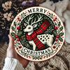 Vánoční dřevěná cedule s klasickým vzorem sobů - Kulatá cedule Navidad na vchodové dveře, závěsná dekorace na zeď - Ideální vánoční ozdoba