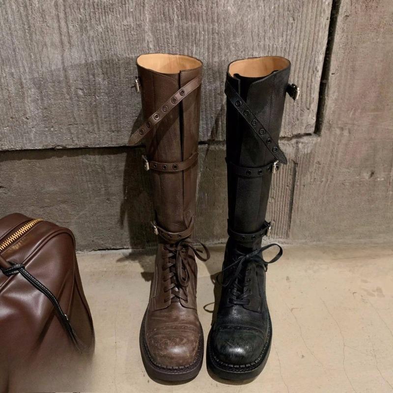Dámské boty na silné podrážce, vysoké boty a dámské boty s přezkami, retro boty na silném podpatku