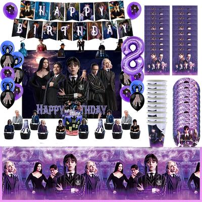 Film Středa Addamsová Dekorace na narozeninovou oslavu Banner Balónky Nádobí Potřeby pro slavnostní události Domácí dekorace