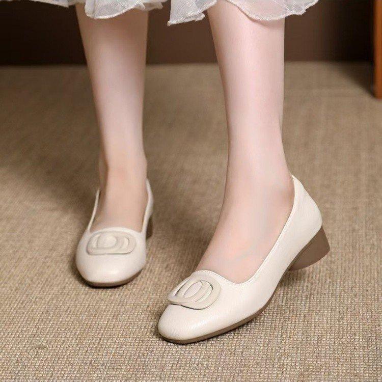 Women's shoes popular soft leather square head single shoes 2025 autumn new shallow mouth versatile mother high heels soft sole leather shoes women