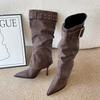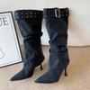 F868-3 Removable two-wear 2025 new autumn and winter high-heeled boots women's pointed thin heels thin boots belt buckle