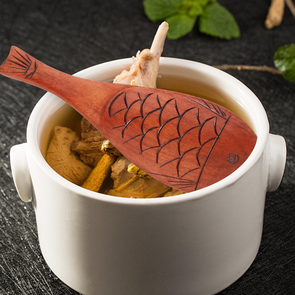 Fish Shape Wood Rice Wooden Serving Scoop Stirring Spoon For Home Kitchen Cooking Lightweight Ergonomic Design