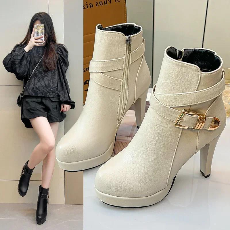2024 Zima Nová Móda Evropa a Spojené státy Ultra-vysoký Podpatek Úzký Boční Zip Vodotěsná Platforma Nízké Holenní Kotníkové Boty
