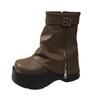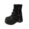 Thick-soled trouser boots women's winter new British style fashion belt buckle high heel small short boots