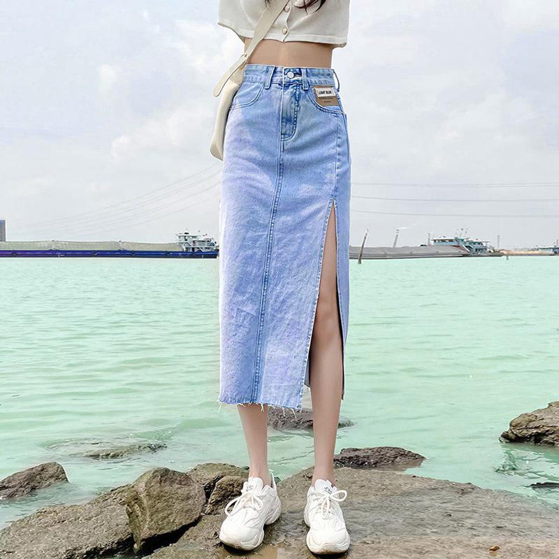 Elevate your summer wardrobe with this chic and versatile denim midi skirt. Crafted from high-quality cotton, this skirt offers both comfort and a flattering fit. Designed in an A-line silhouette, it adds a slimming effect to your look, while the high waist accentuates your natural shape. A stylish side slit provides an edgy touch, perfect for street style fashion. Practical pockets add functionality to this casual piece, making it ideal for everyday wear. Embrace effortless style and elegance with this must-have addition to your collection.