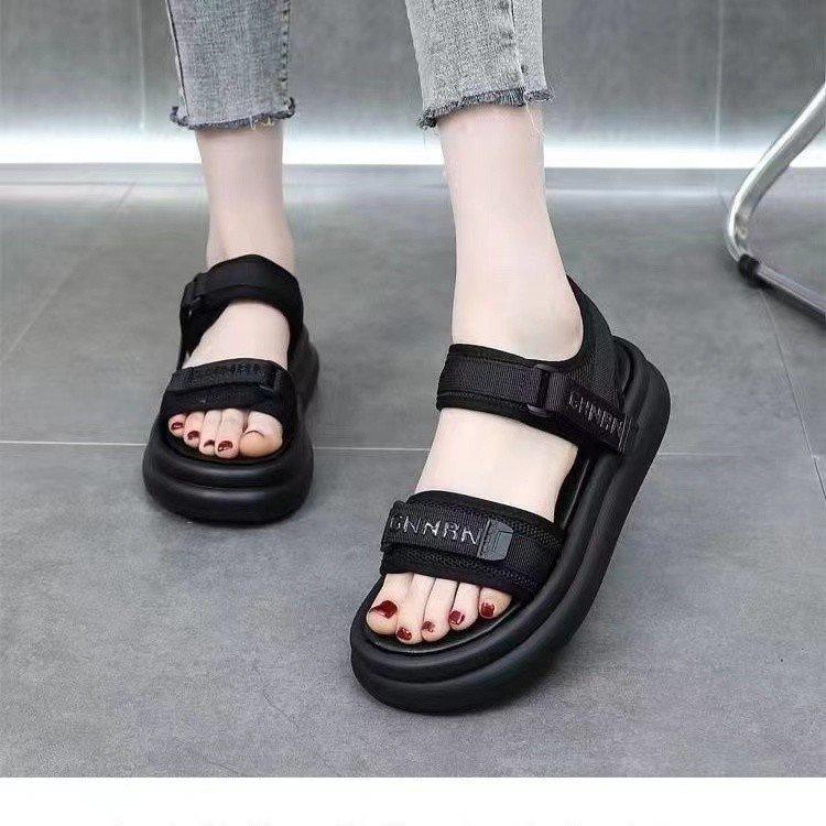 High sense fashion casual bread sandals women's 2025 summer new platform Velcro beach shoes muffin Roman shoes