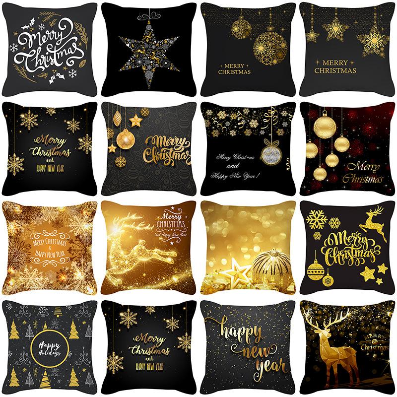 New Black Gold Christmas Pillow Cover New Snowflake Letter Peach Skin Sofa Cushion Cover