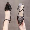 Lodičky na vysokém podpatku s špičatou špičkou, dámská obuv z perlové síťoviny, elegantní dámské uzavřené sandály, výprodej, korejské denní sandály, výprodej