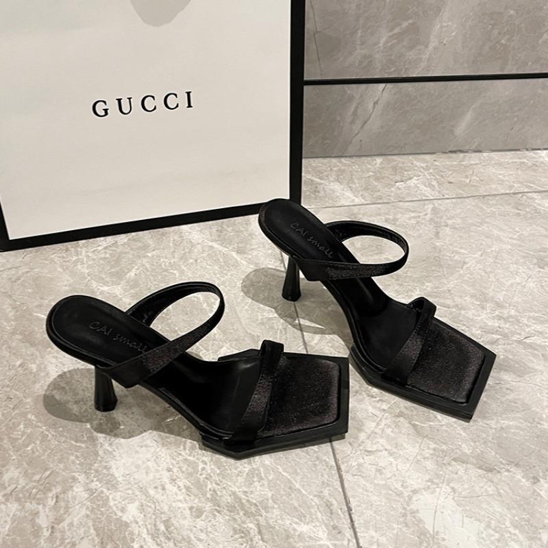 2024 Fashion Simple Ladies Slippers Dew Feet High Heels Solid Color Comfortable Casual Slippers Fashion Black Slippers D176