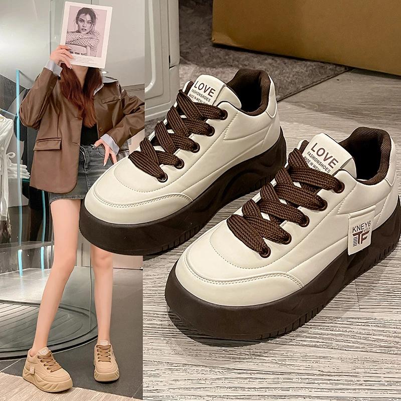 Women's Fashion Casual Shoes Round Head Lace Up Anti-slip Platform Shoes for Women Leisure Spring Outdoor Sports Zapatos Mujer