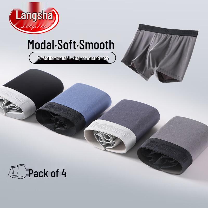 Langsha Men's 7A Antibacterial Modal Boxer Briefs 4-Pack