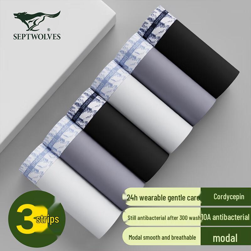SEPTWOLVES Men's Cordyceps Anti-bacterial Modal Boxer Briefs 3-Pack