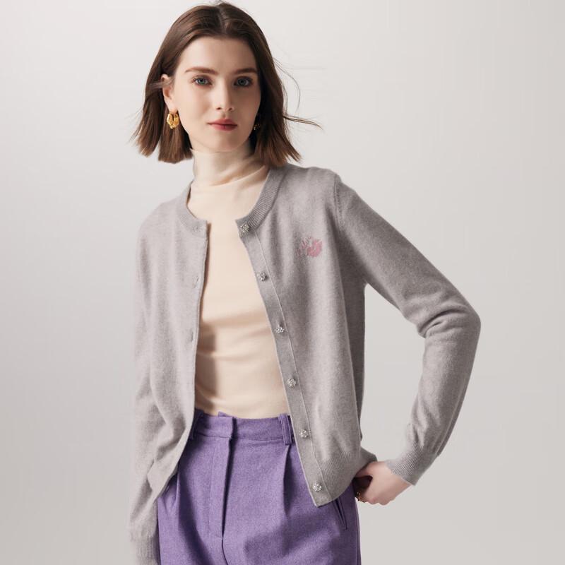 PALUOPO Women's 2025 A/W 100% Cashmere Intarsia Round Neck Cardigan