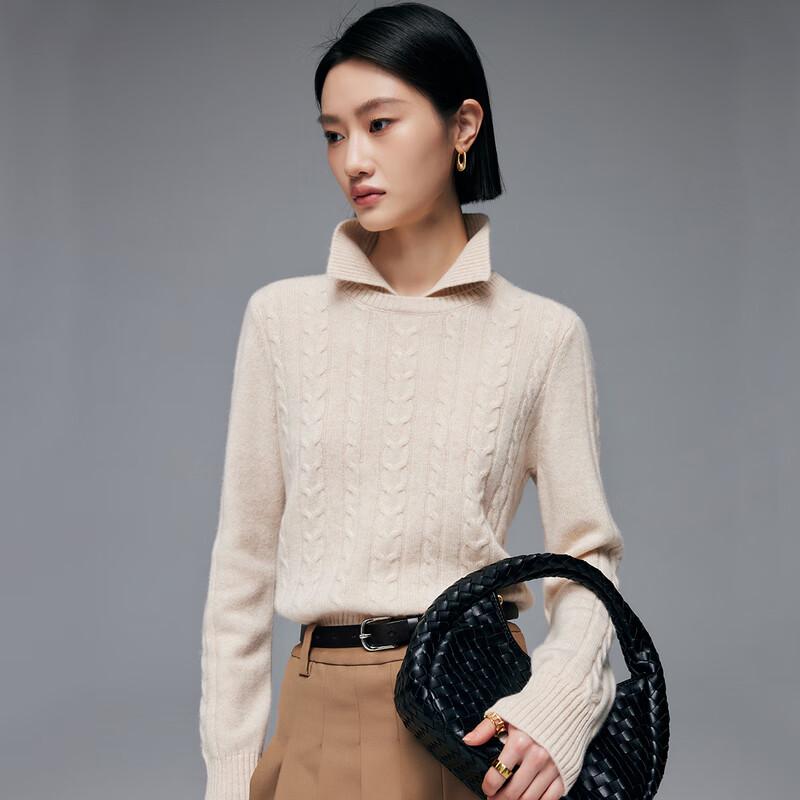 Paruo Women's 100% Cashmere Cable Knit Polo Sweater