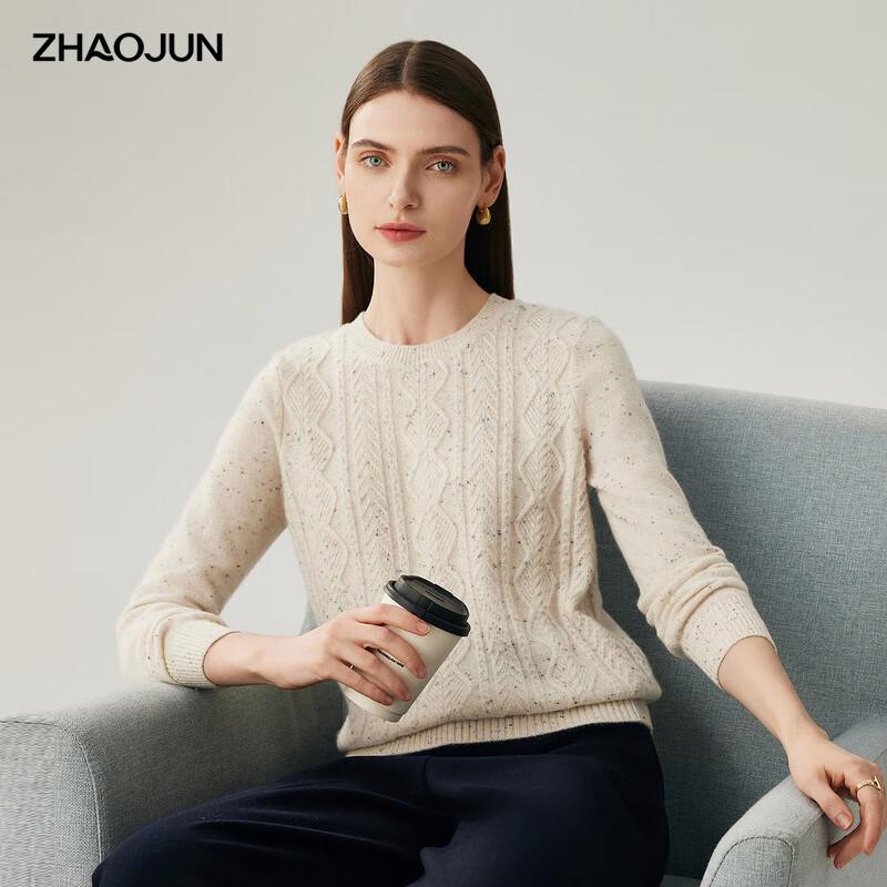 Women's 100% Cashmere Round Neck Cable Knit Sweater