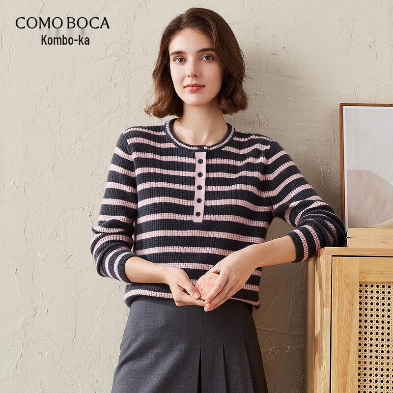 Kemon Boca Women's Striped Round Neck Cashmere Sweater