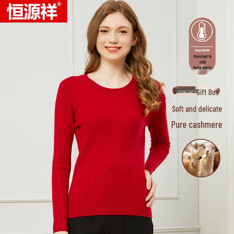 Hengyuanxiang Women's Slim Fit Cashmere Round Neck Sweater