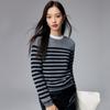 Paluo 100% Cashmere Striped Jacquard Round Neck Sweater