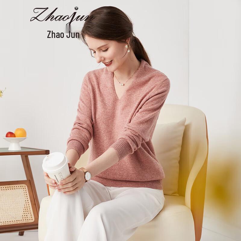Zhaojun Women's V-Neck Pure Cashmere Beaded Sweater