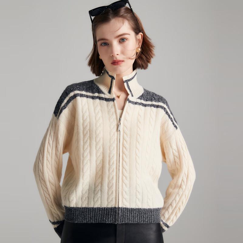 PALUOPO Women's Contrast Color Pure Cashmere Cardigan