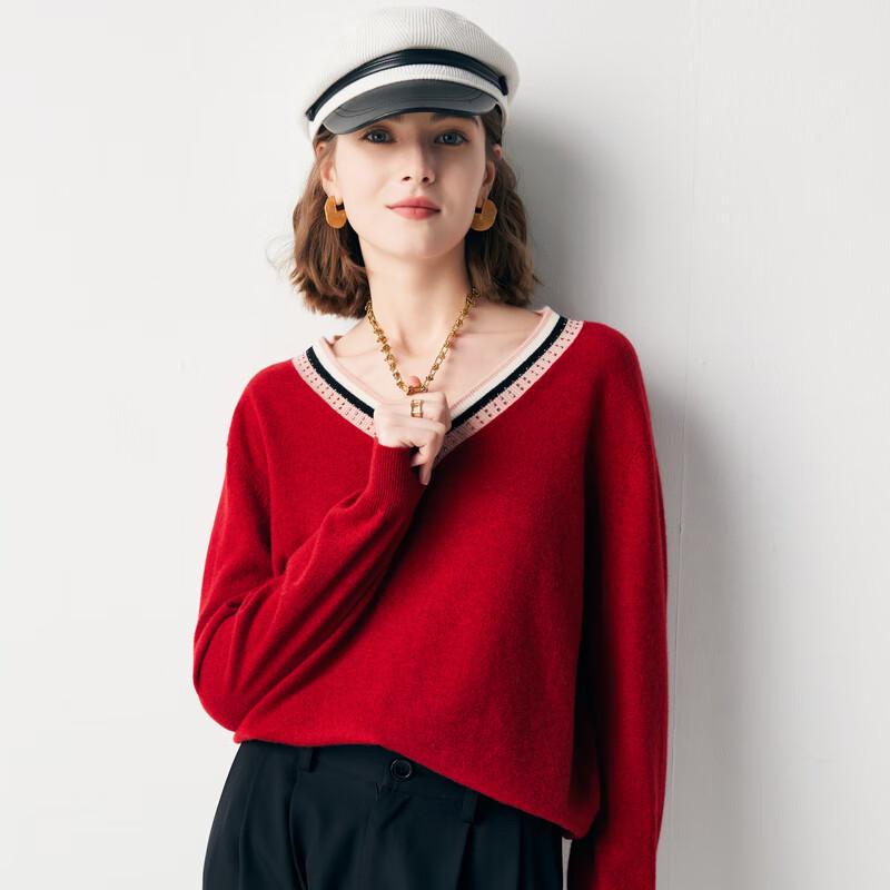 Parlo Women's V-Neck Color Block Cashmere Sweater