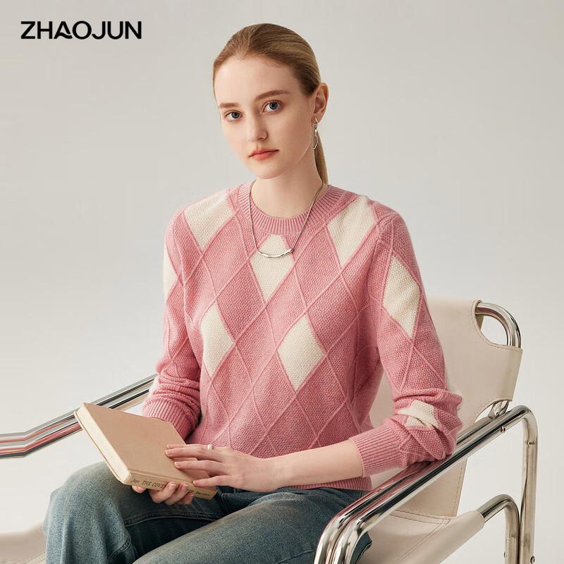 Zhaojun Women's Round Neck Diamond Knit Cashmere Sweater