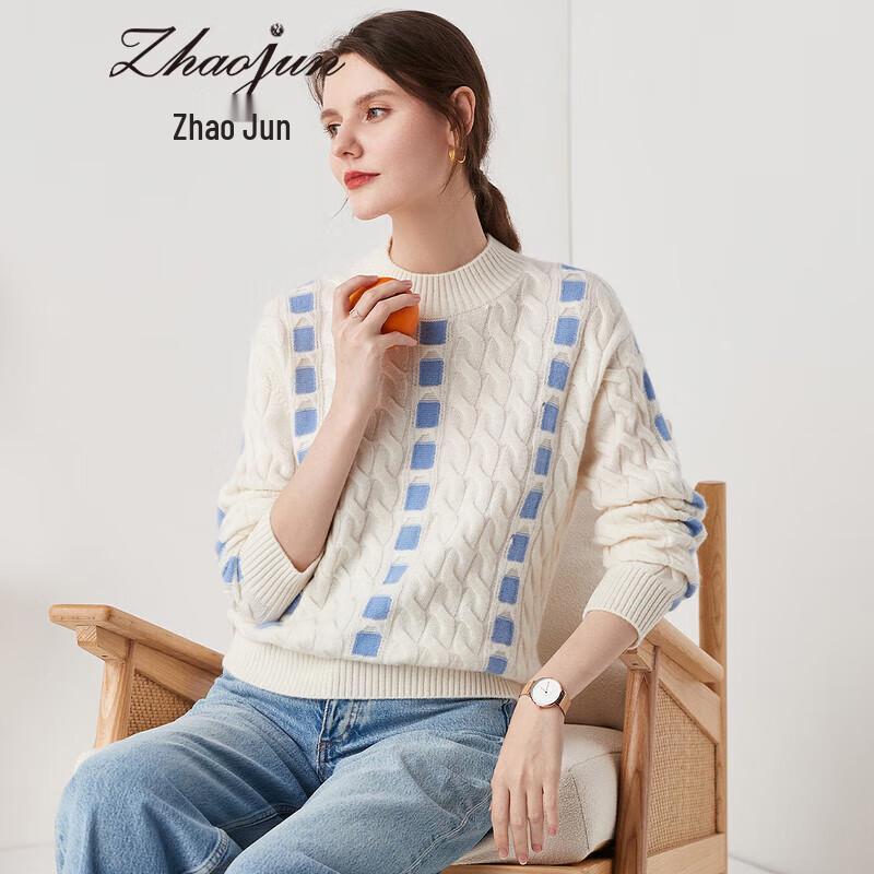 Zhaojun Women's Autumn/Winter Pure Cashmere Plaid Mock Neck Sweater