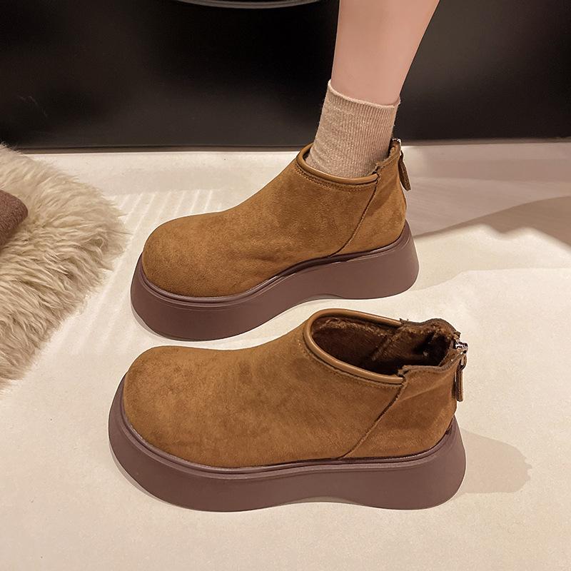 British style retro frosted leather short boots women's 2025 autumn and winter new versatile rear zipper Chelsea snow boots
