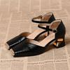 Premium metal iron head hollow sandals summer French temperament square head thick heel versatile comfortable bag head single shoes
