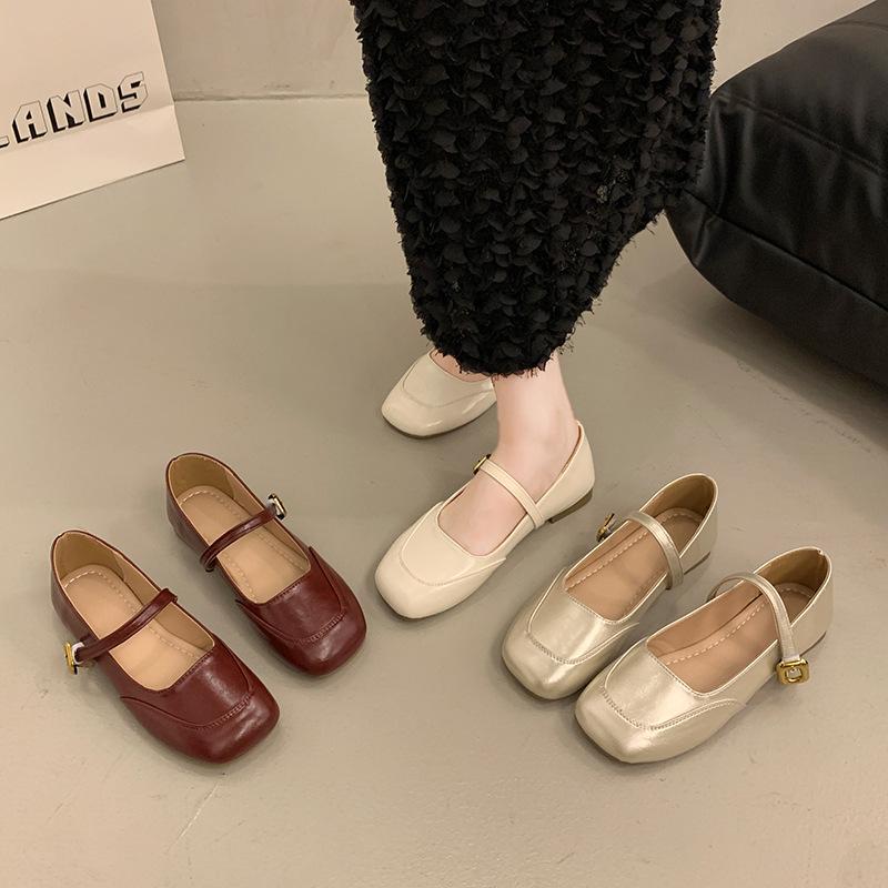 French retro light mouth square head small leather shoes 2025 spring and summer new versatile outer wear Mary Jane shoes with skirt