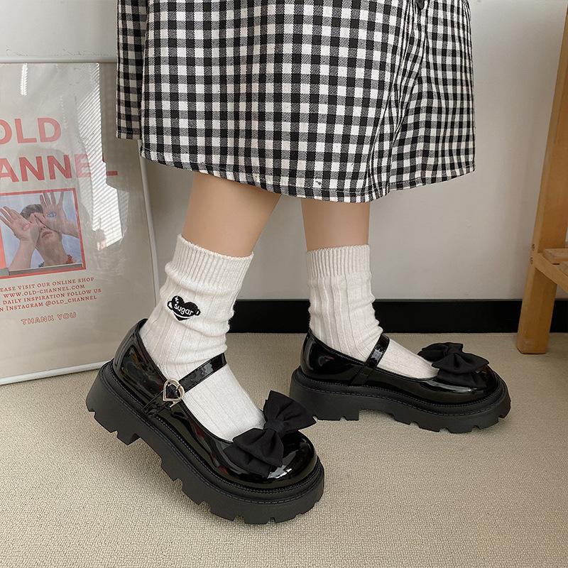 Sweet and cool Mary Jane small leather shoes Japanese women's jk platform big head shoes summer thin bow single shoes lo shoes