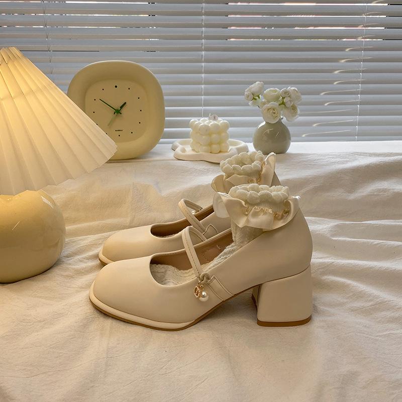 French gentle evening breeze Mary Jane high heels women's thick heel spring and autumn with skirt summer 2025 new small leather single shoes