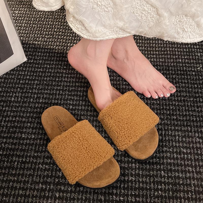 Simple casual daily one-word drag in autumn 2025 new outer wear thick-bottomed open-toed comfortable home fluffy slippers