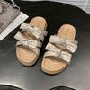 Gentle bow beautiful cool slippers women's summer wear 2025 new with skirt beach soft flat bottom one-word slippers