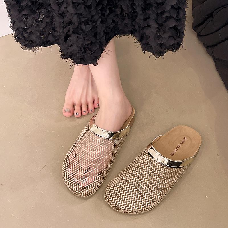 Hollow fishing net bag head half slippers women's 2025 new fashion versatile with skirt one pedal beach cool slippers