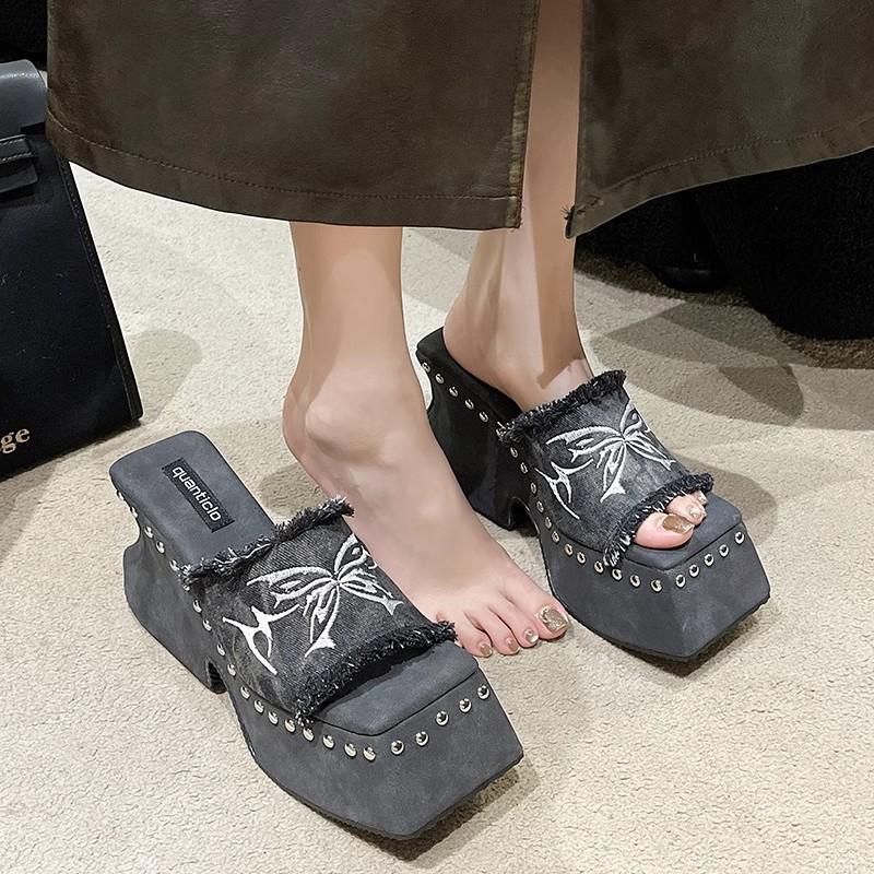 Cool slippers for women outside 2025 summer new butterfly platform slippers millennial babes sexy open-toed high-heeled sandals