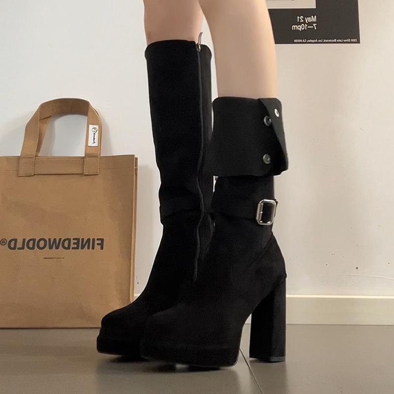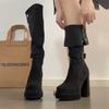 Dámské módní boty na dva způsoby nošení podzim a zima 2025 retro všestranné silný podpatek britský styl vysoký podpatek jezdecké boty módní boty vlna