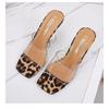 Large size summer new transparent one-word open-toed high-heeled square head sandals women's slippers