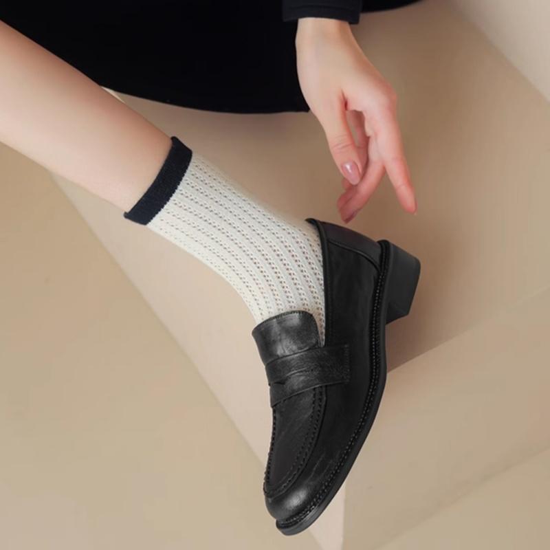 2025 Autumn And Winter Leather Flat Shoes Designer New Style Solid Black Casual Women Loafers Comfortable Soft Soled Women Flats