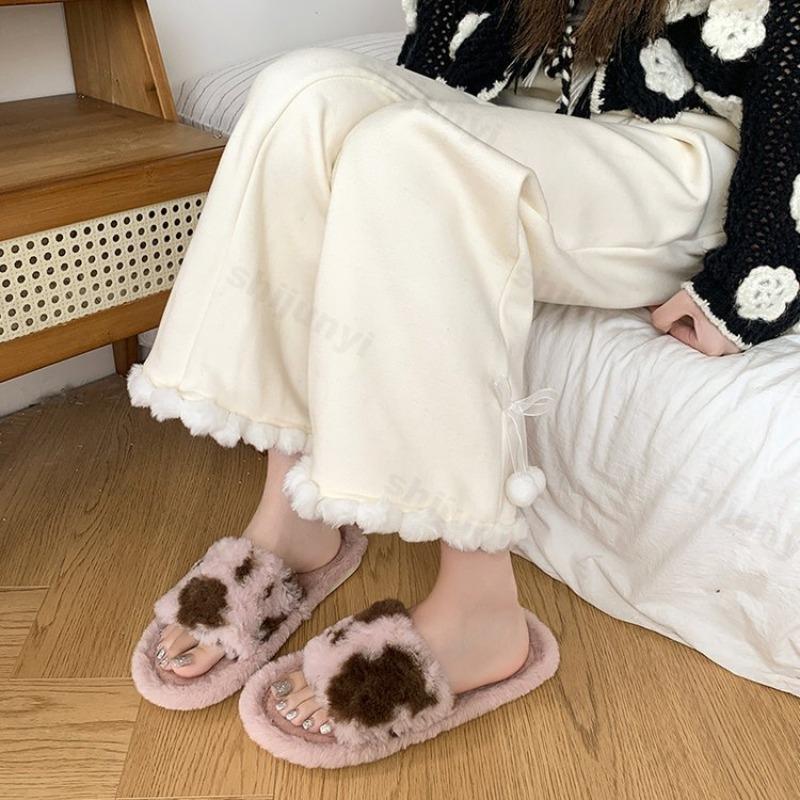 Women's One Word Slippers 2025 Autumn Winter New Cute Lightweight Non Slip Plush Shoes Comfortable Fashion Slip on Flat Slippers