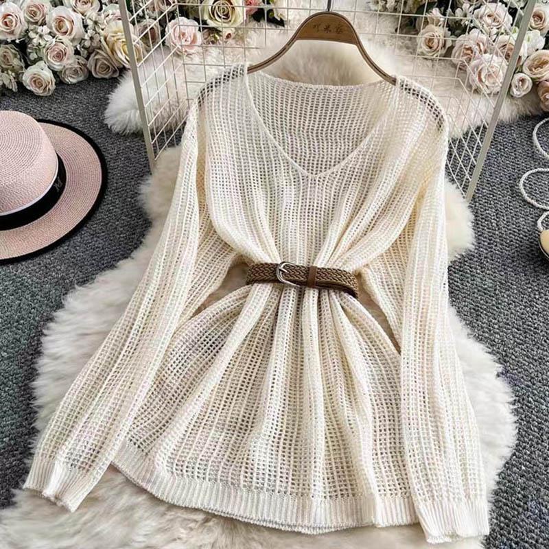 Sweater for Women Spring Summer Openwork Knit Sweater Solid Color Sun Protection Cover-Up Tops
