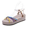 Barva Summer Beach Bohemia Sandály Ženy Perly Kotníkový pásek Gladiátor Boty Žena Platforma Klínky Sandály De Mujer 43