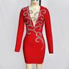 Black Red Rhinestone Long Sleeve Bandage Evening Dress
