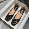 Dámské boty na nízkém podpatku, čtvercová špička, velká přezka, ploché boty, kancelářské dámské nazouvací kožené mokasíny, jarní boty, lodičky
