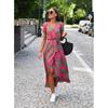2023 New V-Neck Printed Slit Dress with Tie Waist